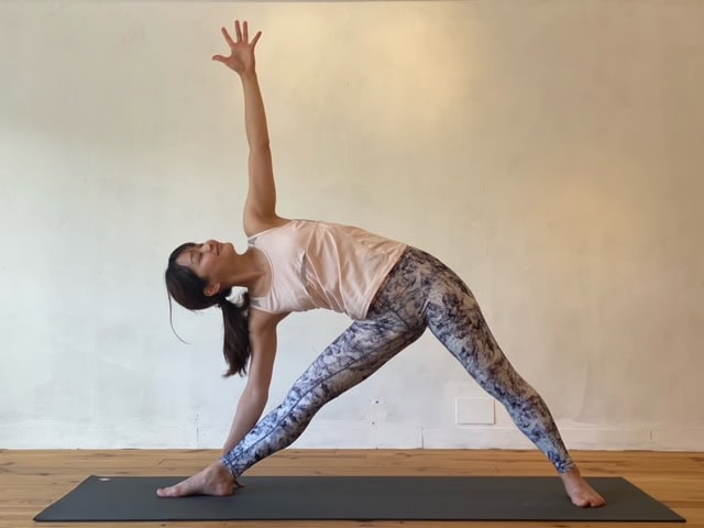 お気に入りのトリコーナ・アーサナ。コース受講前よりもアラインメントの意識が格段に深まった。