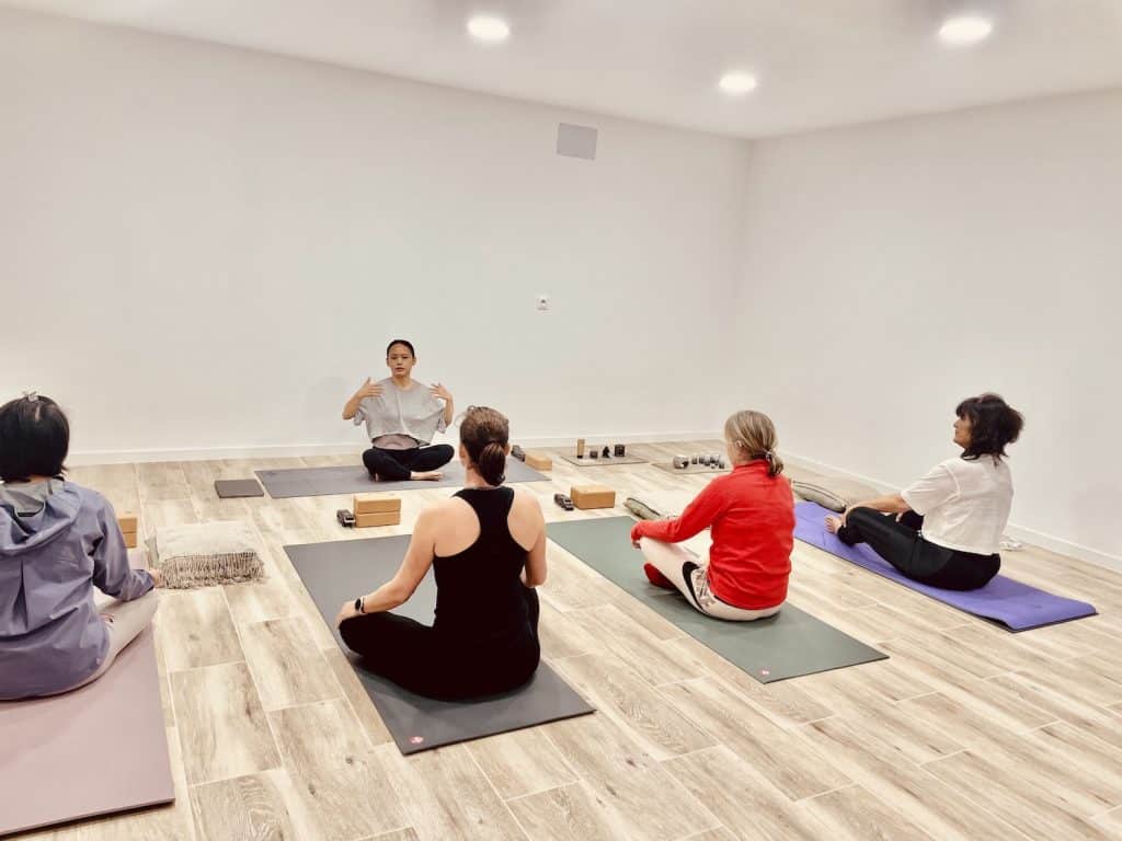 私がヨガを本格的に始めたのはリラヨガでRYT200を取ると決めてからでした。仕事で移動が多く、運動はしていなくても体は動かしているという自負はあったものの、コロナ禍のある日にふと思いつきでYoutubeでヨガをしてみた際に、自分の身体の内側の変化を呼吸とともに確認する体験をしてから、間も無くRYT200を取る決意をしました。今思うと自分でも全てが直感的な決断と思えます。ヨガ経験の浅かった私でしたが、HPにかなり詳細に受講内容が記載されていたので説明会までに随分イメージが出来ました。そのため、説明会は学校の雰囲気や、場所の確認、気になる点の確認で十分でした。
