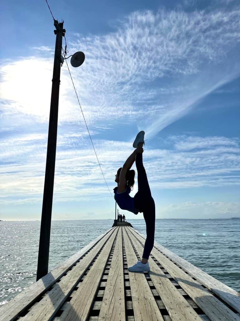 「幼少期からバレエを続けていたものの、バレエでは過度な柔軟体操はしてこなかったため最初は今ほど深い後屈は出来ませんでした。柔軟性を手に入れるためには辛い練習に耐える必要があるイメージがあるかもしれませんが、私は常に怪我なく気持ちよく身体の柔軟性を高める方法を探求しながら現在の柔軟性を手に入れました。人によって異なる可動域の差を見極めながら、深い呼吸と機能解剖学に基づいたアプローチをしていきます。このシリーズでまだ解放されていないみなさまの身体の可能性を最大限に解き放っていければ嬉しいです。」